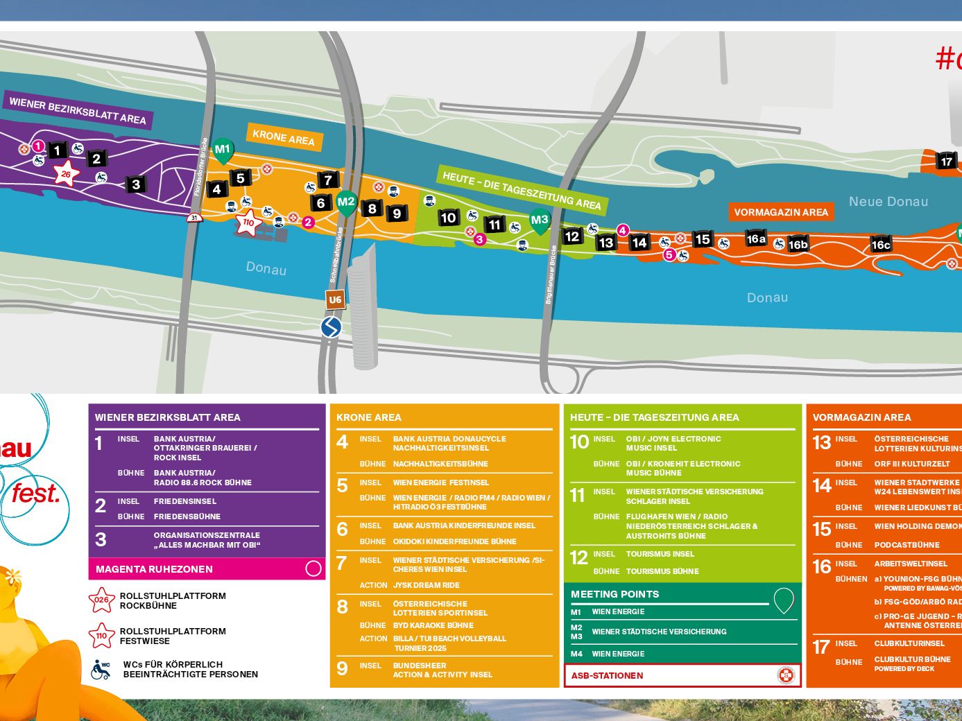 Donauinselfest-Plan 2025: Alle Bühnen und Stationen
